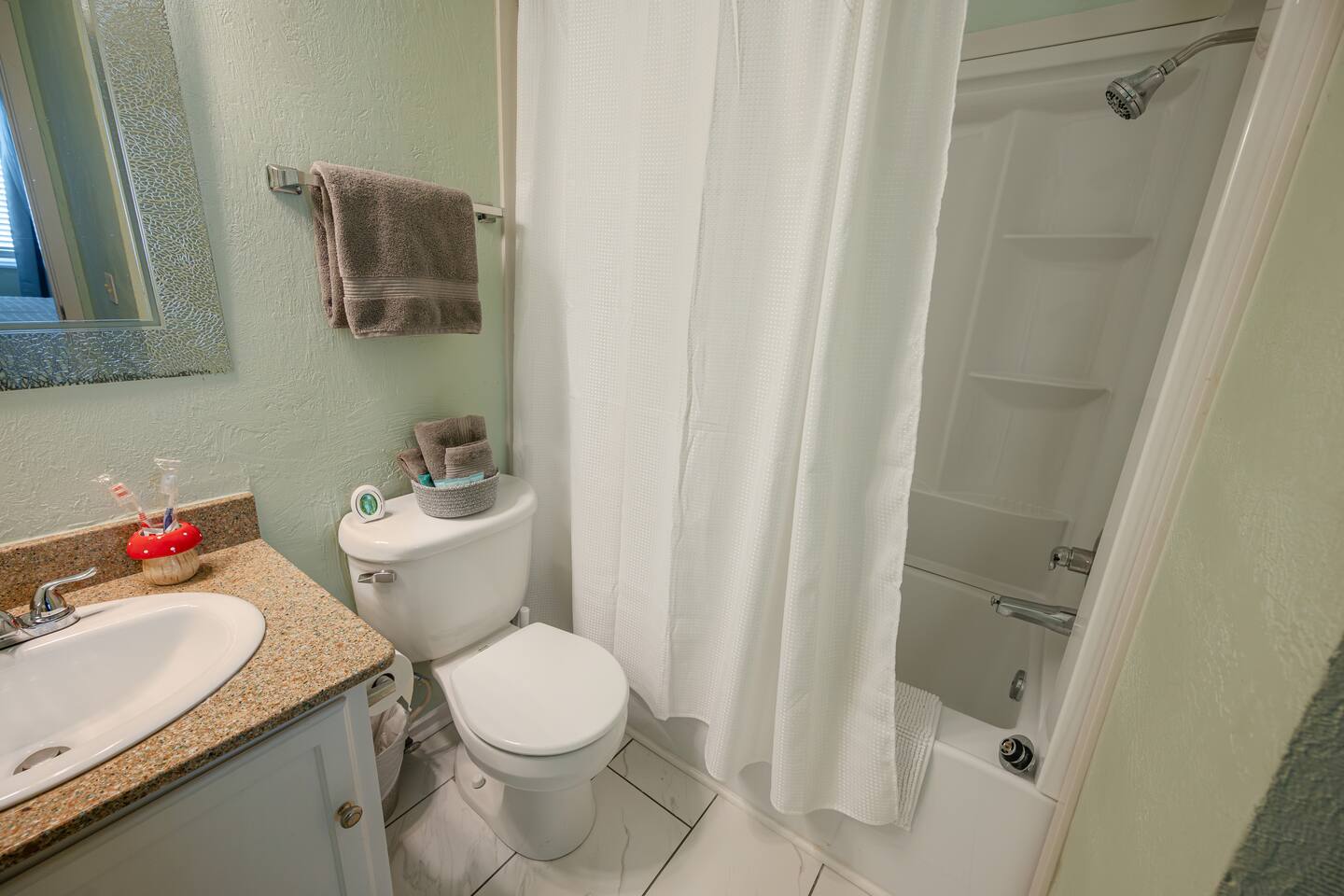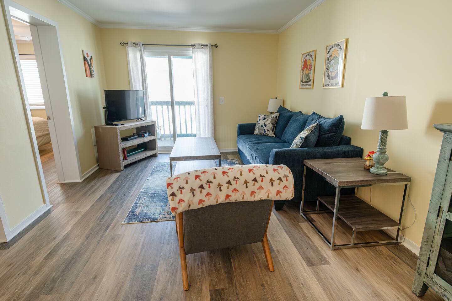 Welcome to Portabella Paradise – Your Unique Beachside Retreat in Carolina Beach! Situated just steps from the beach, Portabella Paradise is not your typical coastal getaway. Our beautifully decorated condo embraces a whimsical mushroom theme, and our guests absolutely love it! The fun, inviting atmosphere will make your stay as memorable as it is relaxing. Condo Highlights: • A 1-minute walk to the beach and 3 blocks from the Carolina Beach Pier, perfect for fishing, ocean views, and grabbing a drink at the pier lounge. • Guests can enjoy our provided beach chairs, towels, and access to the on-site pool for some fun in the sun. •Two bedrooms with queen beds, plush linens, and 32" Roku TVs ensure a restful night's sleep after a day of adventure. • The living area features new, stylish furniture, including a queen pull-out sofa, where you can relax and enjoy your evening. • Sip your morning coffee or evening wine on our balcony, as you take in the breathtaking sunrise over the ocean. Whimsical Mushroom Theme: Every corner of our condo embraces the playful and creative mushroom theme, adding a touch of nature and fun to your stay. From mushroom artwork to decor, guests are often inspired by the unique style, leaving us even more mushrooms to add to the charm. If you're looking for a place with personality, Portabella Paradise is the perfect spot. Things to Do Nearby: 1. The nearby Pleasure Island is famous for its Blues and Jazz. You can also go surf fishing and watch many sea turtles there. The Lake Park offers serene and secluded campsite around the lake. 2. Carolina Beach Boardwalk: Just a short distance away, it’s the heart of local entertainment with shops, restaurants, and amusement rides. 3. Freeman Park: Head north to enjoy beach driving, camping, and shell searching at this popular stretch of sand. 4. Carolina Beach State Park: Take a scenic hike through the park’s diverse ecosystems or rent kayaks for a day on the water. Flytrap Trail is so named for the abundance of carnivorous plants on the hiking path. 5. Fort Fisher & NC Aquarium: History buffs will love Fort Fisher, while families can enjoy the nearby aquarium, just a 15-minute drive south. 6. Wilmington Breweries: If you’re up for exploring, Wilmington’s craft beer scene is top-notch, with plenty of options to sample local brews. No matter how you spend your days, Portabella Paradise is a truly one-of-a-kind home base for your Carolina Beach adventures. Whether you're here for the beach, fun activities, or to experience the whimsical decor, this is the perfect place to create lasting memories. Book now and let the magic of our mushroom-inspired retreat enchant you!